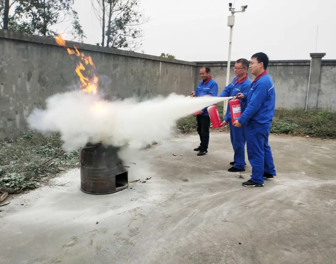 隨後(hòu)參加演練的員工分組進行(háng)實戰滅(miè)火演(yǎn)練,將所學(xué)理論(lùn)知識轉化(huà)為實操。全體參加演練人員從容冷靜,正確操作(zuò),拉開安全插銷,拿起噴管,用力握下手壓柄(bǐng),對準火焰根部左右掃(sǎo)射向前推進滅(miè)火,整套滅火流程迅速完成(chéng),成功將火熄滅。