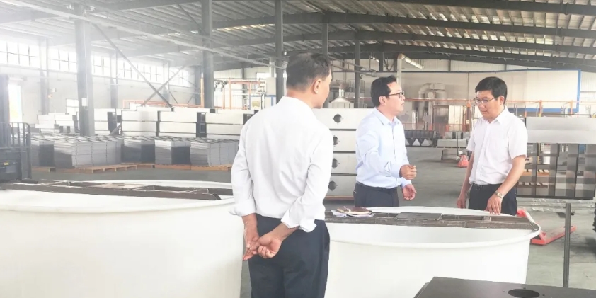 公司總經理魏文林陪同總裁參觀了生產車間,介紹了公司產品市場占有情況(kuàng)、核心拳頭(tóu)產品研發進程,就(jiù)目前的銷售情況做了匯報(bào):科陽公司截止4月(yuè)30號,已經基本完成集團下達的(de)2024年銷售目標任務。到2024年底,科(kē)陽(yáng)公司各類烘幹(gàn)機銷售數量(liàng)力爭在2023年基礎上翻一番,銷售收入在 2023年基礎上也翻一番。